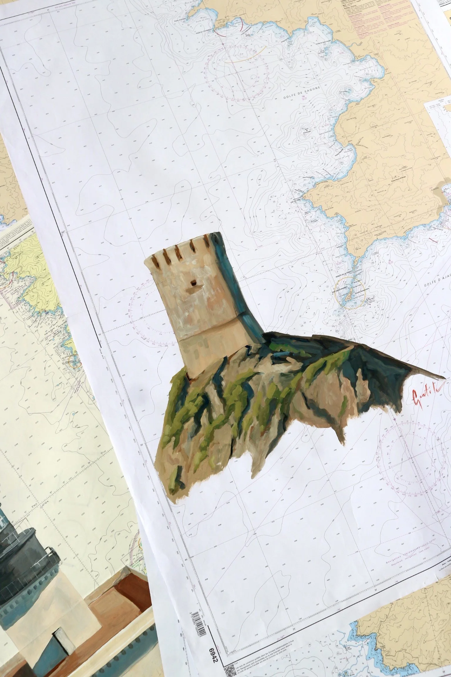 De ces esquisses sont nées des toiles à l’huile, gorgées de sel, de chaleur et de silence.